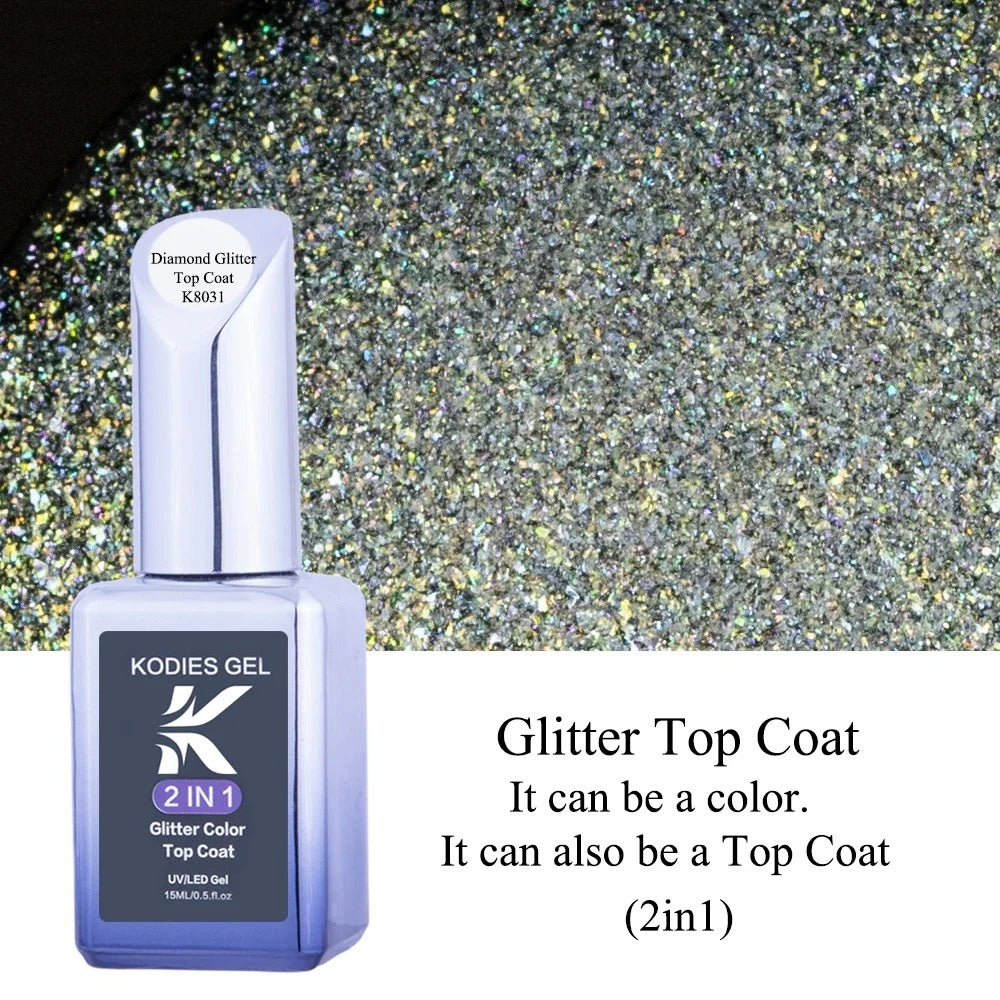 AVP PASSION: Diamond No-Wipe UV Glitter Top Coat Gel Polish (15ML)