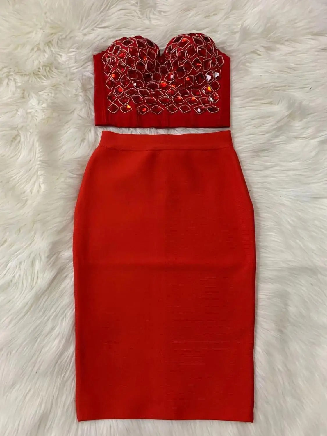 AVP PASSION: Hand-Beaded Red Two-Piece Bandage Set