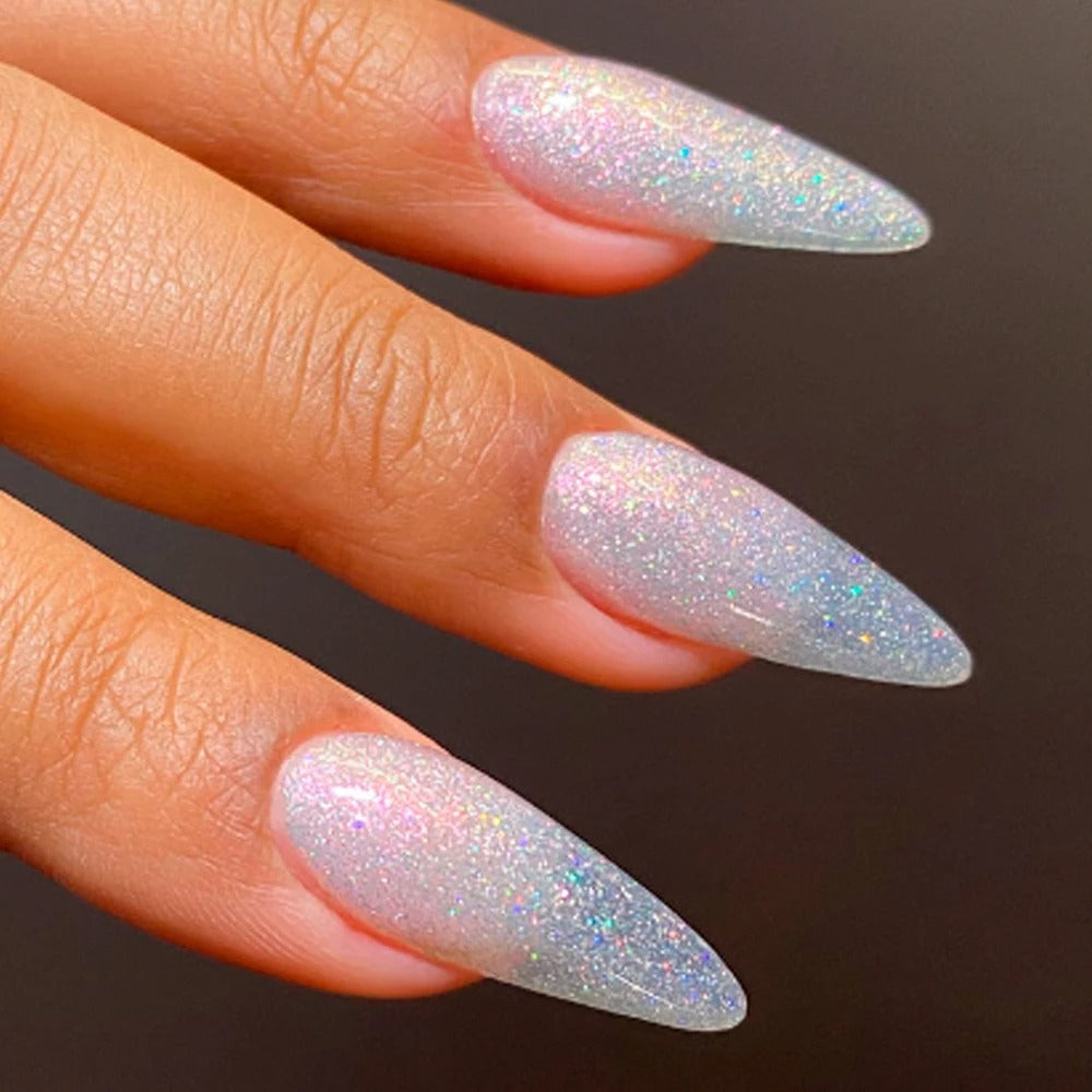 Lina M.      This gel catches every light and looks amazing on my nails.