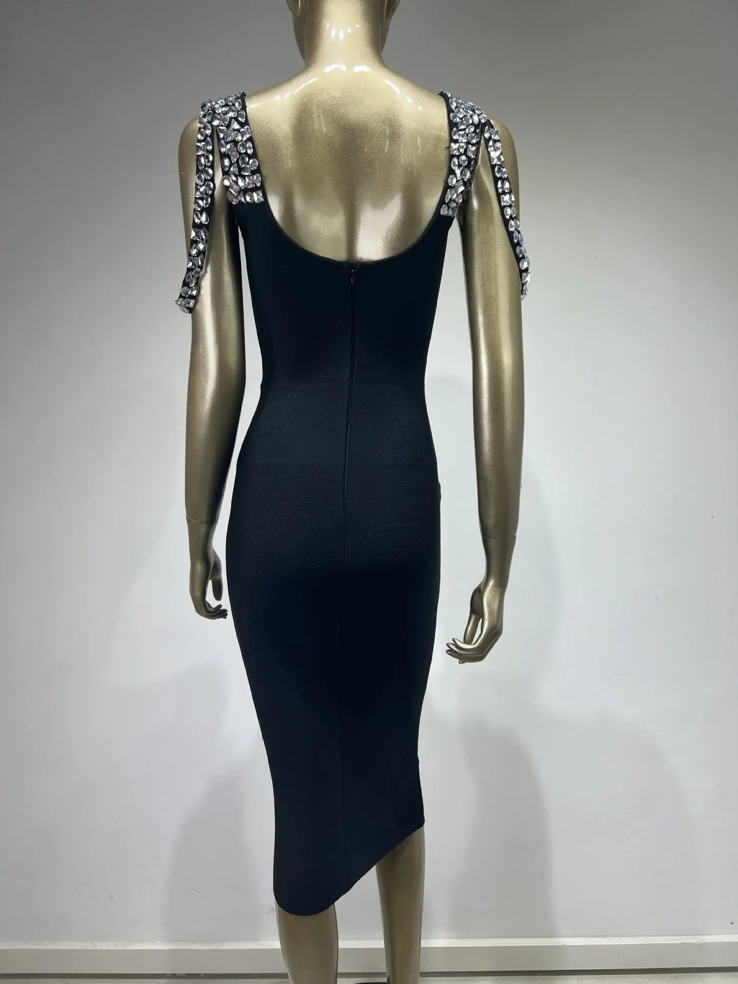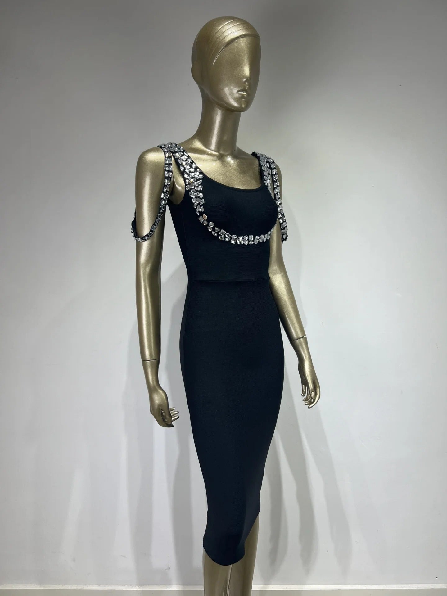 - Stunning figure-hugging bandage dress with sparkling crystal detail
