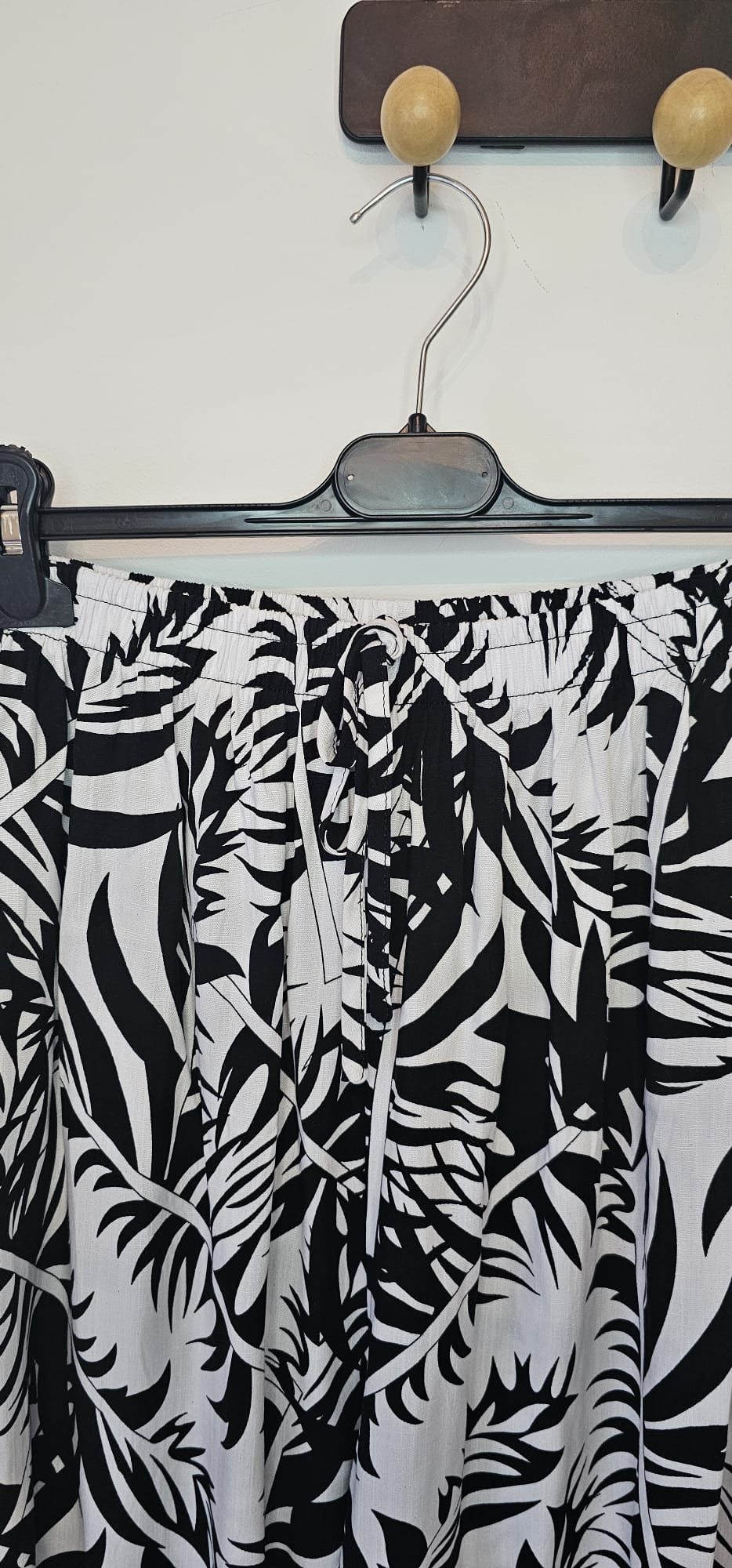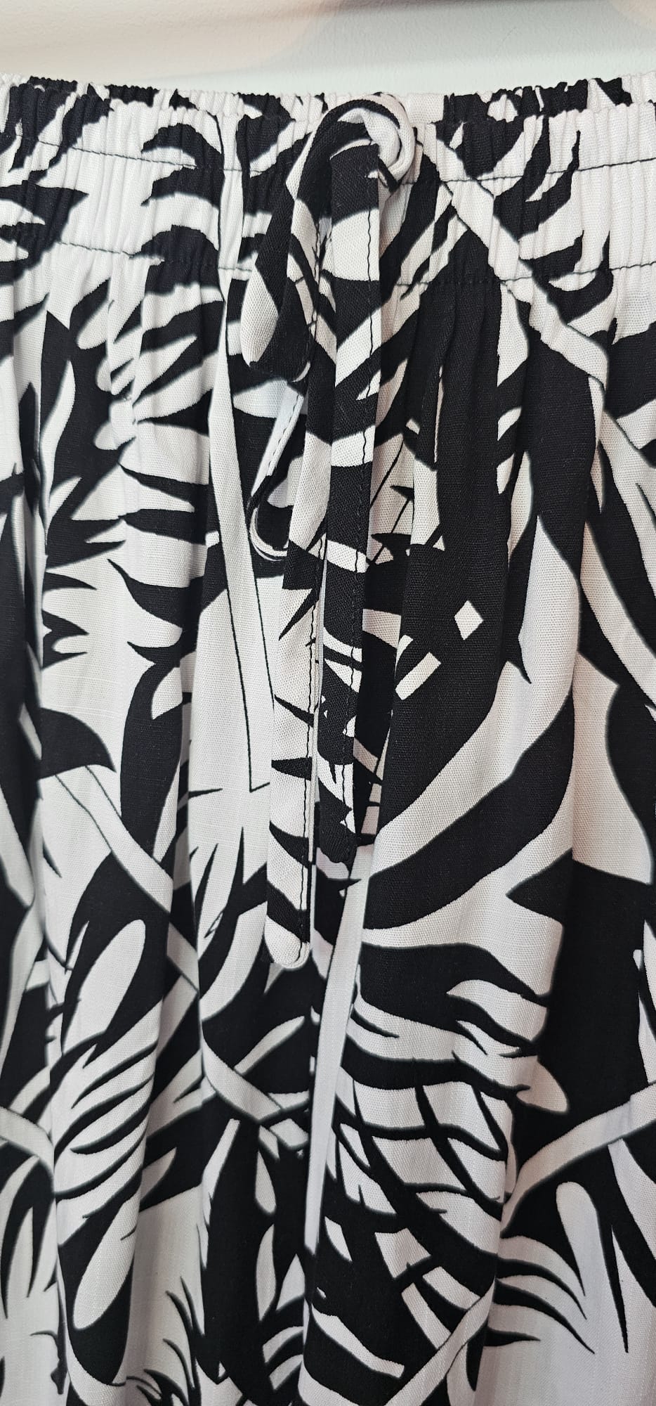 AVP PASSION Pantalon fluide femme bohème taille basse à motifs feuilles noir blanc