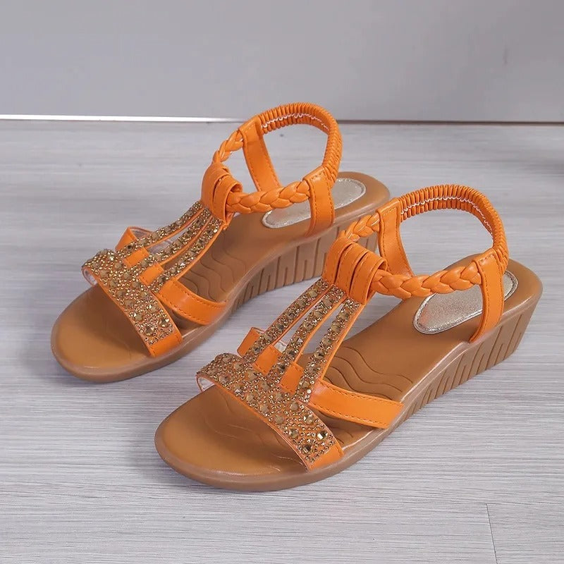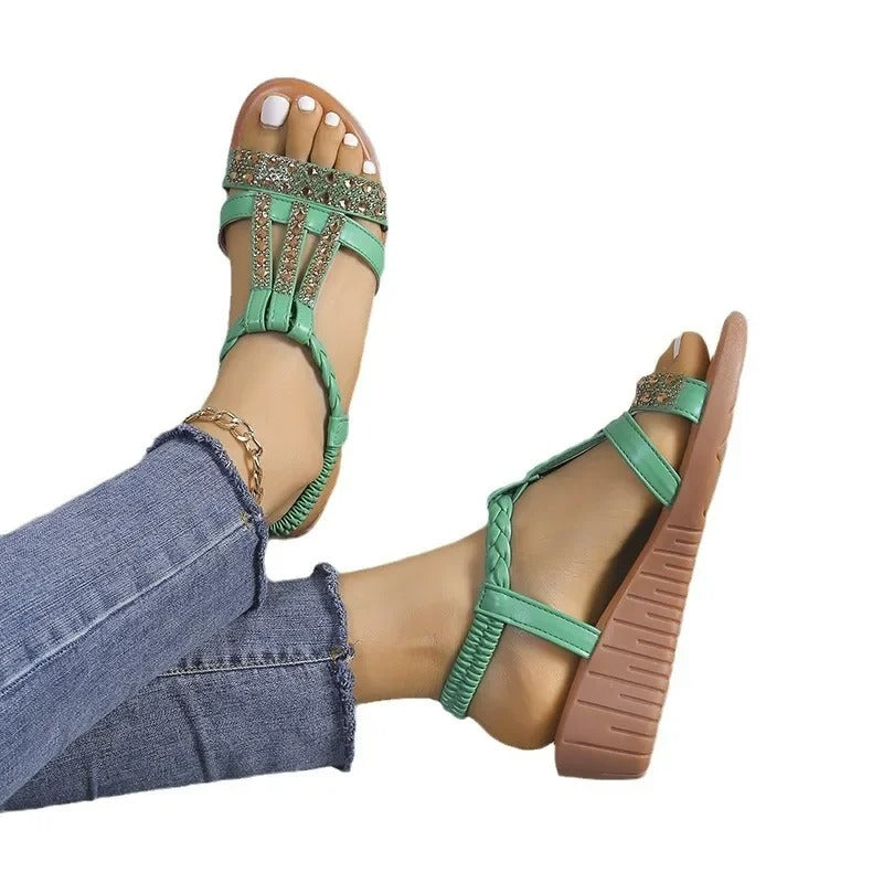 AVP PASSION: Rhinestone Elastic Gladiator Sandals