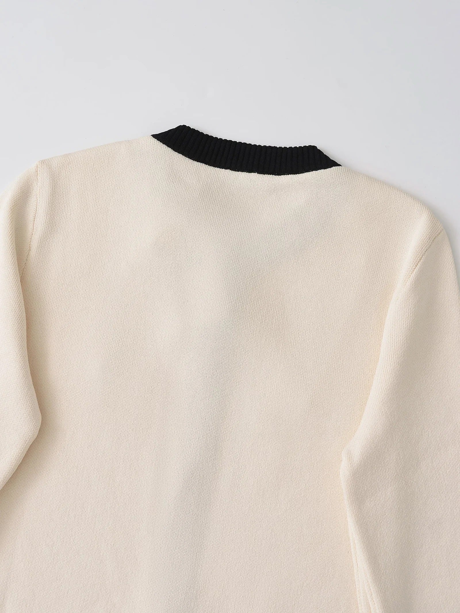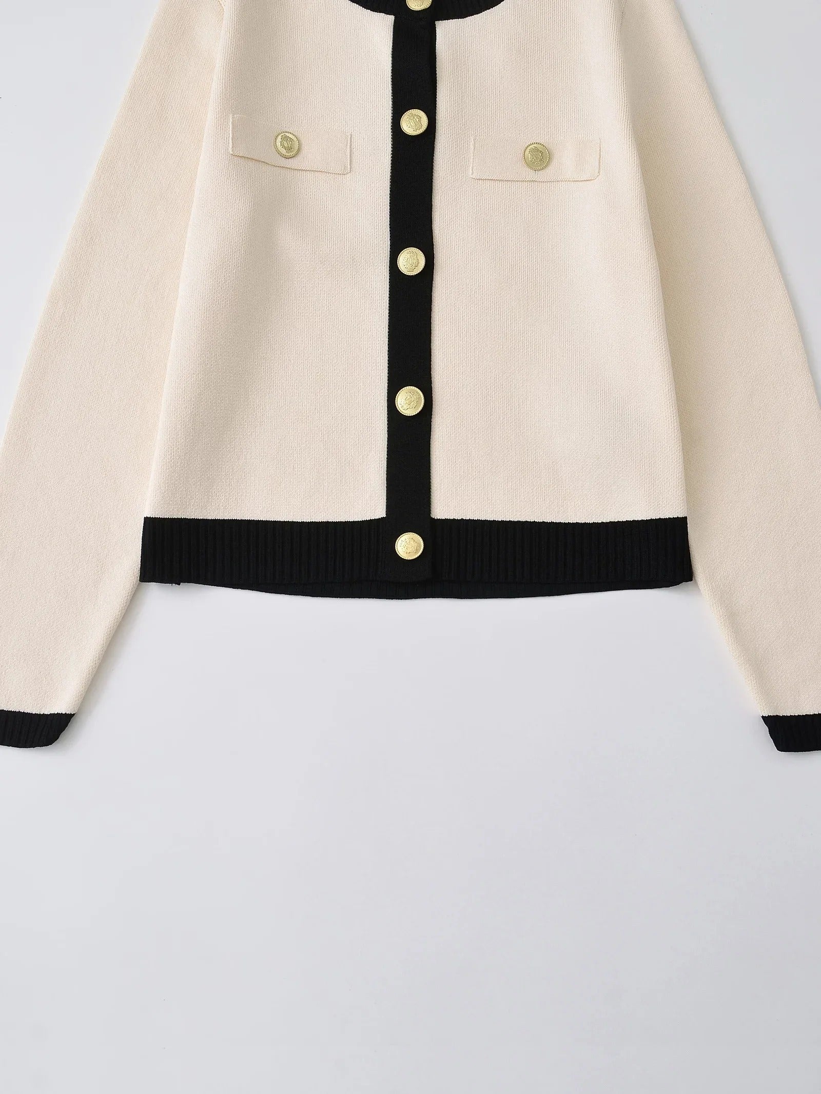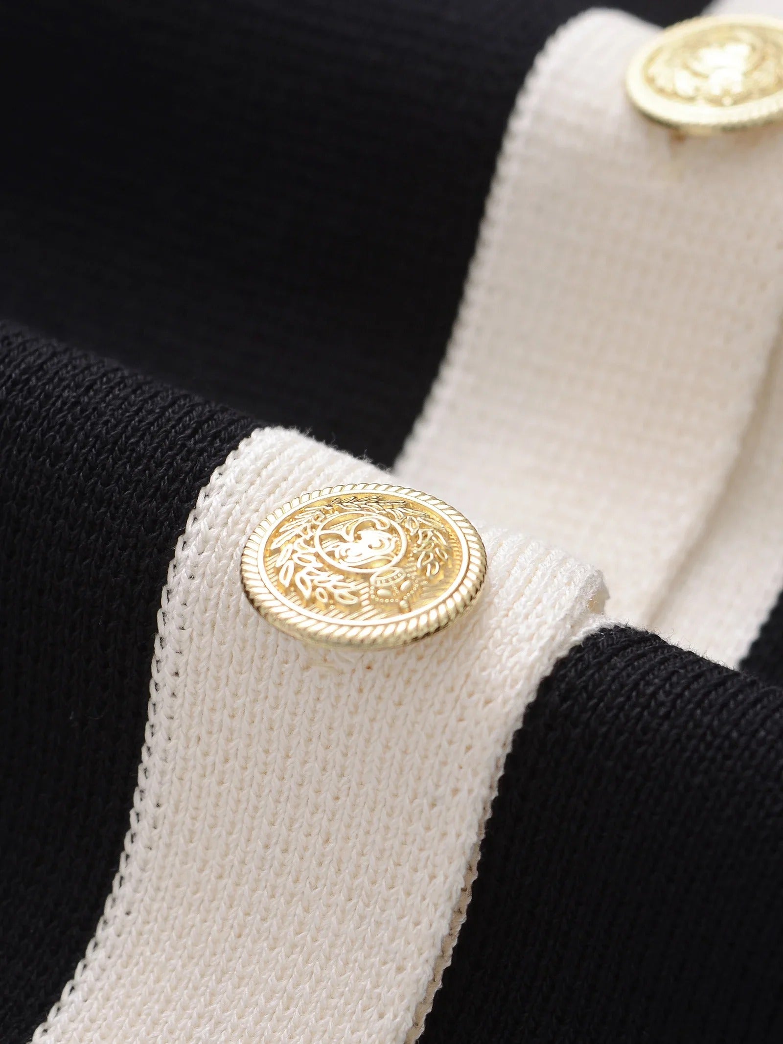 Cardigan Chic Noir & Blanc – Boutons Dorés