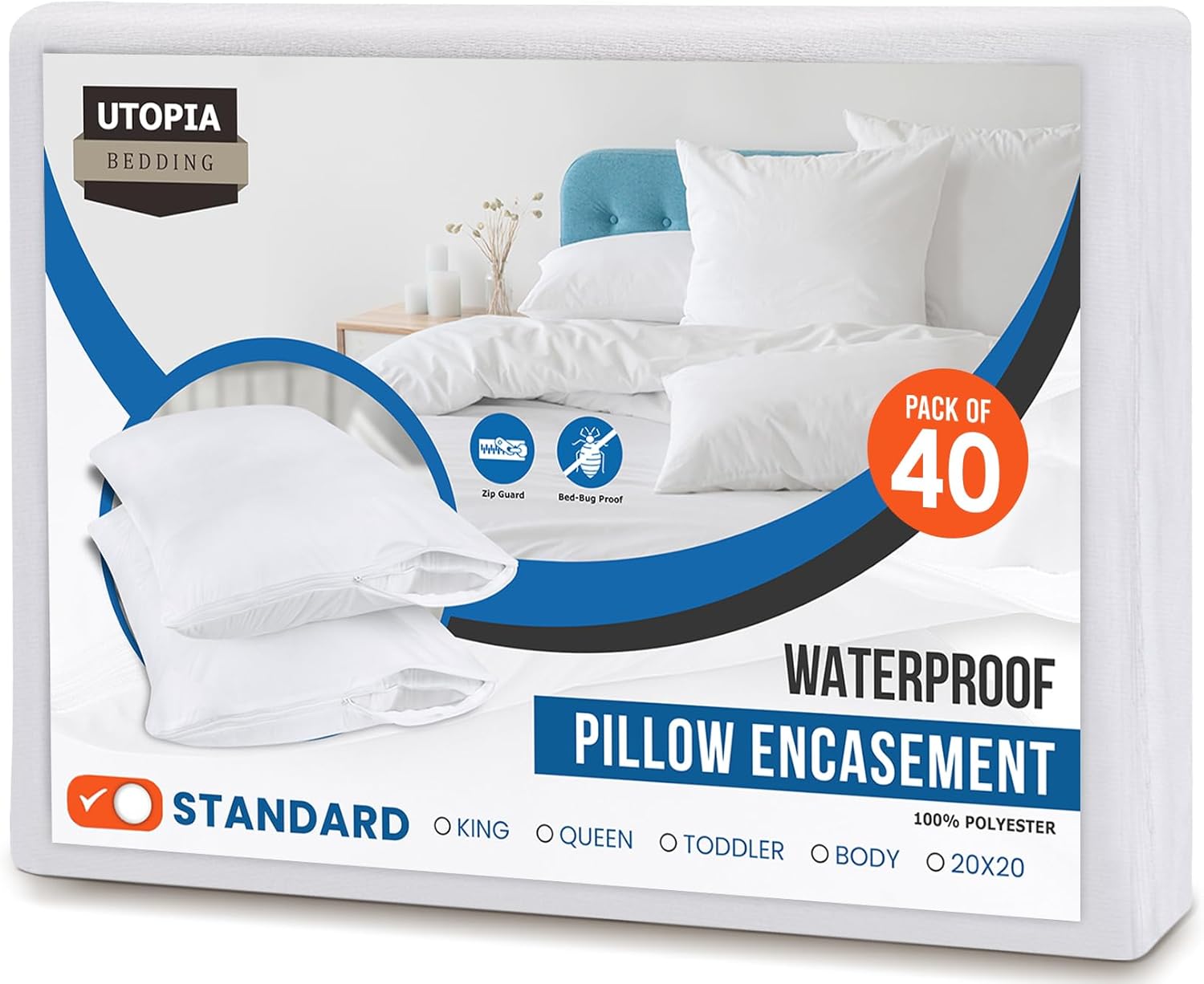 Lot de 2 Protège-Oreillers Imperméables avec Fermeture Éclair (50x70 cm)